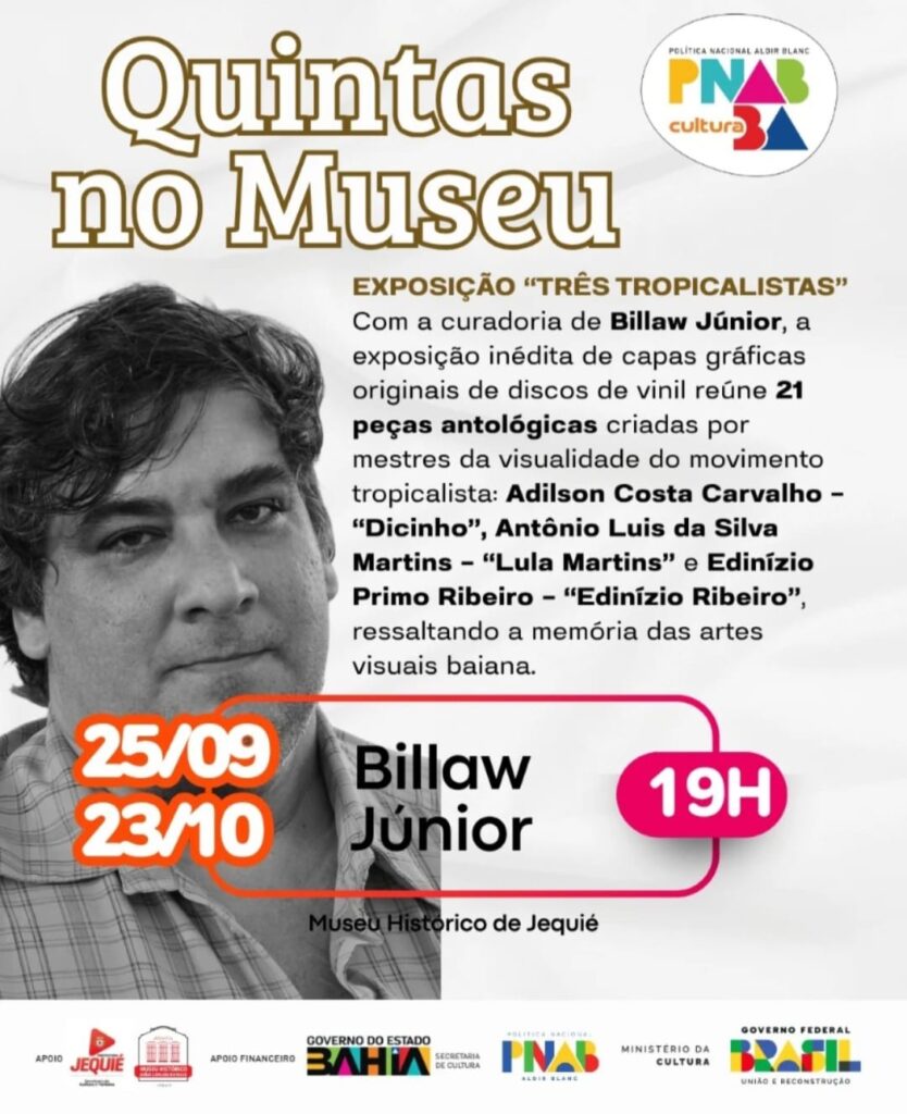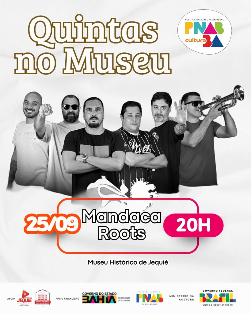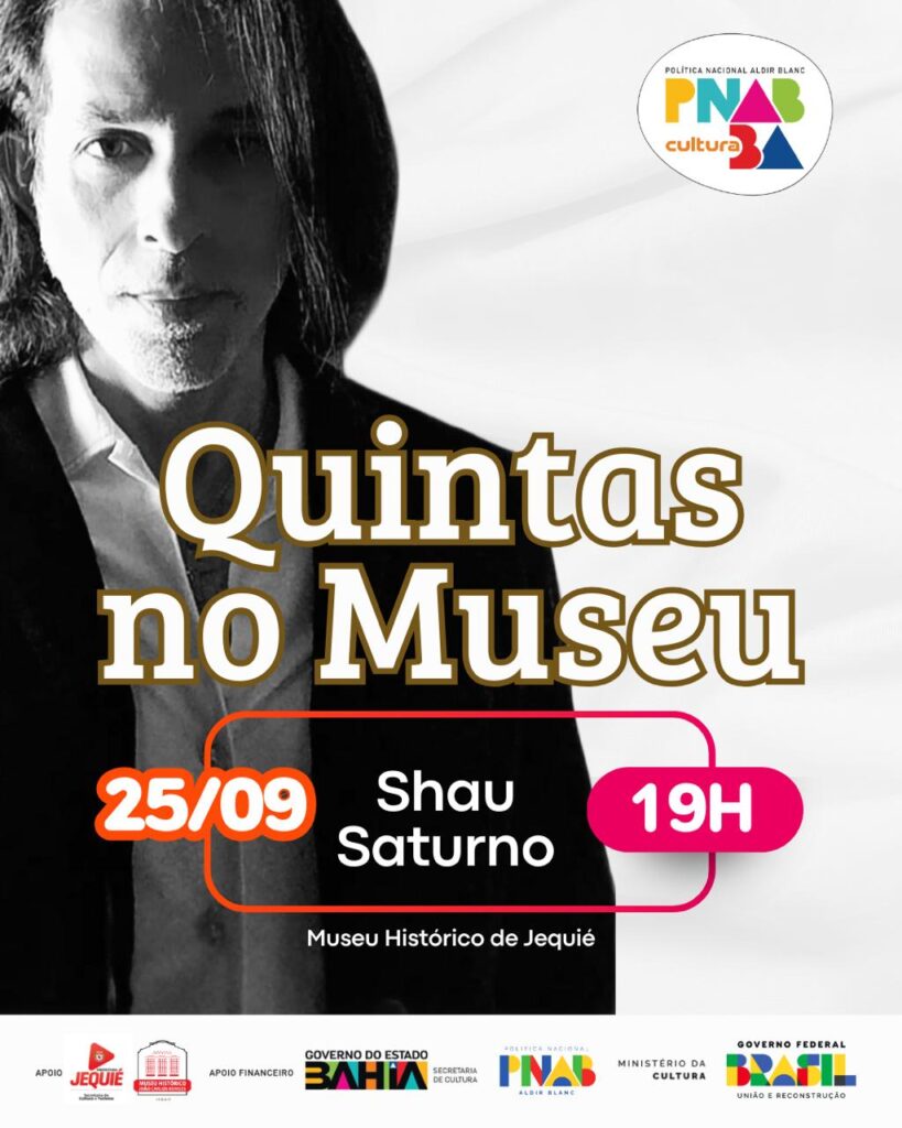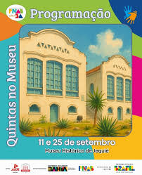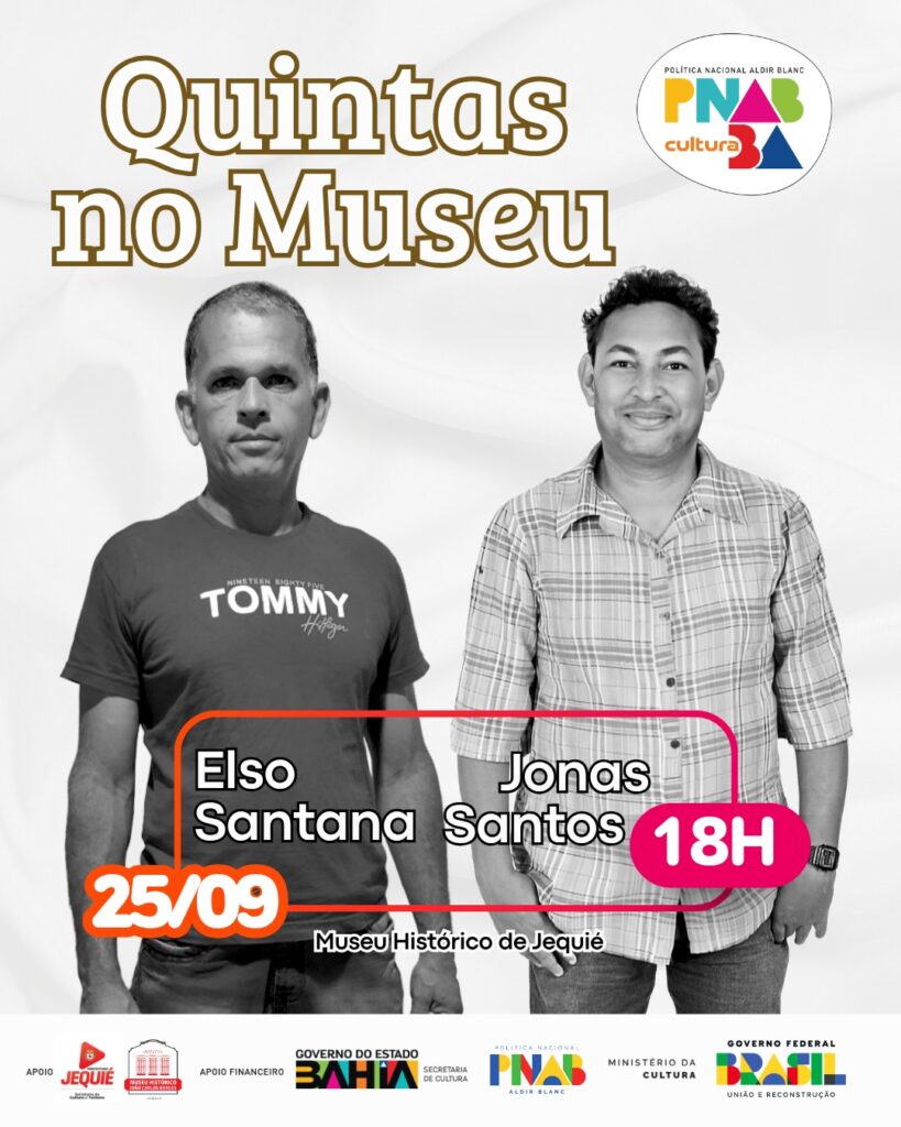 O Projeto “Quintas no Museu”, idealizado pelo Gestor e Produtor Cultural Alysson Andrade, tendo como parceiro o Museu Histórico de Jequié, sendo o projeto contemplado nos Editais de Política Nacional Aldir Blanc Bahia, com o apoio financeiro do Governo do Estado da Bahia, através da Secretária de Cultura do Estado via PNAB, direcionada pelo Ministério da Cultura – Governo Federal.